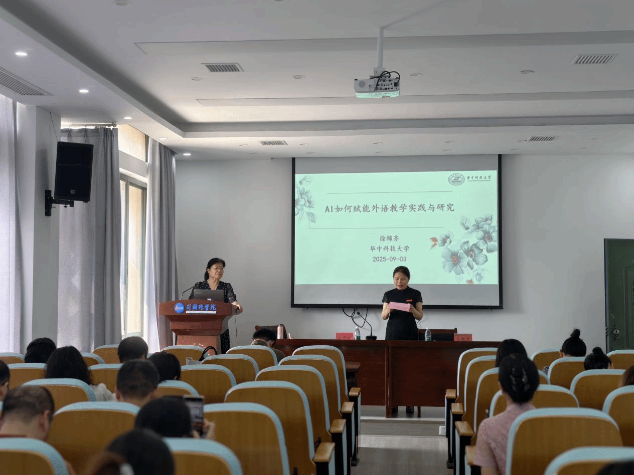 9月3日下午,华中科技大学二级教授、博士生导师、国务院政府特殊津贴专家徐锦芬教授应邀做客必赢官网第323期鄱湖学术讲坛,在崇德楼A300做了题为“AI如何赋能外语教学实践与研究”的学术报告,必赢国际437官网教师、研究生代表参加了讲座。