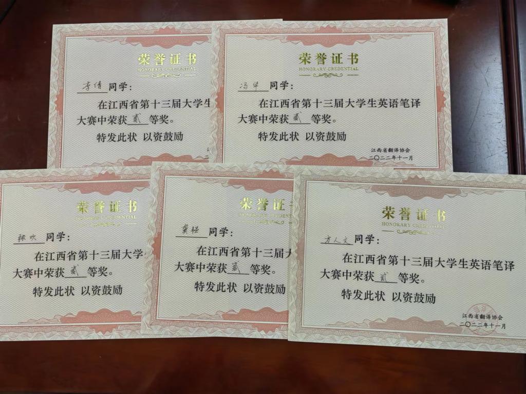 必赢官网学子在江西省第十三届英语笔译大赛中喜获佳绩