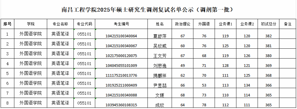 南昌工程学院2025年硕士研究生调剂复试名单公示(调剂第一批)