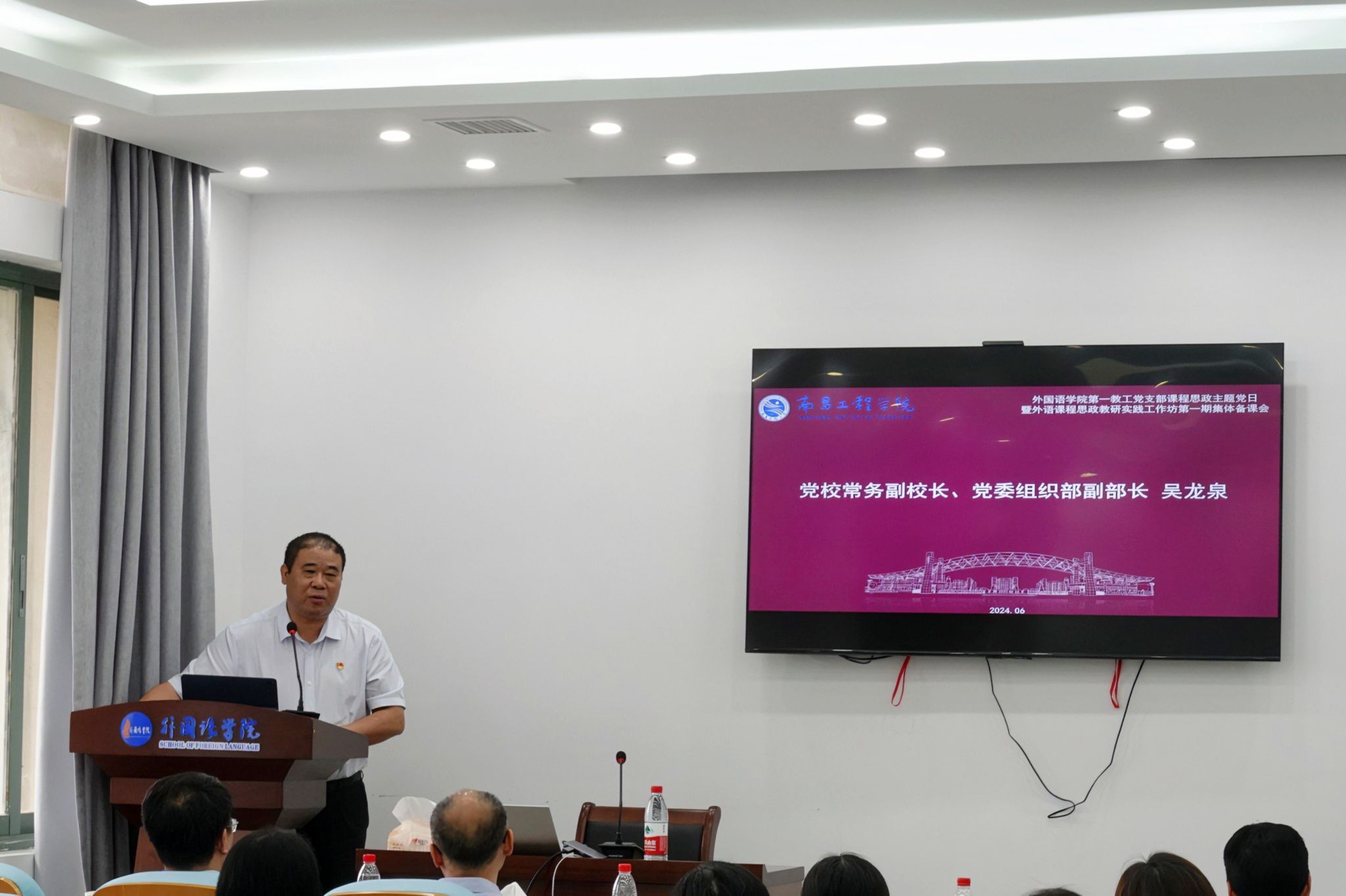 6月14日,必赢国际437官网在崇德楼A300会议室举办课程思政主题党日活动暨“外语课程思政教研实践工作坊”第一期集体备课会,进一步推动课程思政建设。学院领导班子成员、教工党员、相关教师代表、学生代表等70余人参加。
