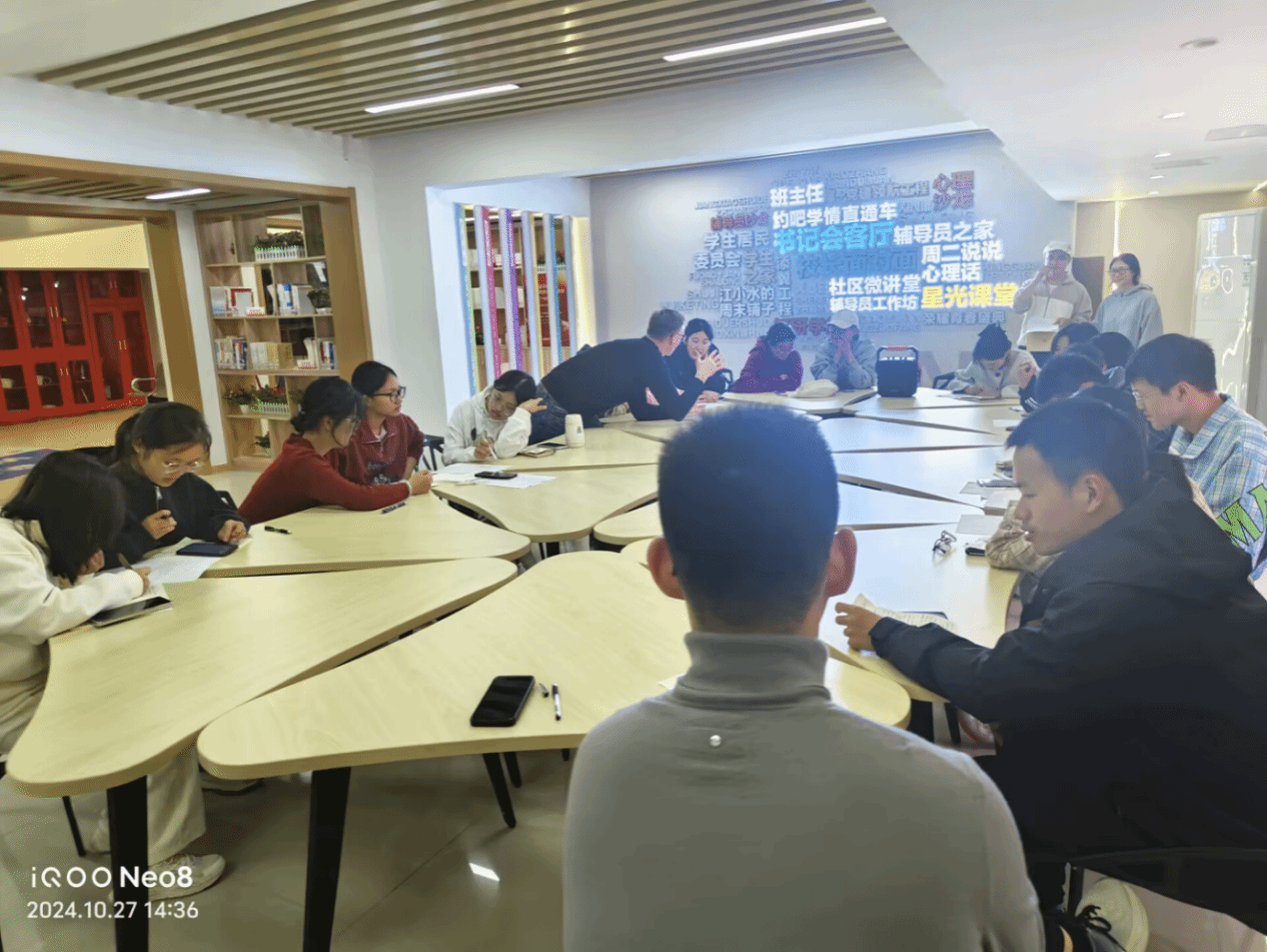 10月27日,必赢国际437官网在学生社区服务中心举办了英语角活动,活动吸引了众多热爱英语和渴望提升思维能力的同学参与,并邀请外教William、专业老师张玉军共同参与活动。