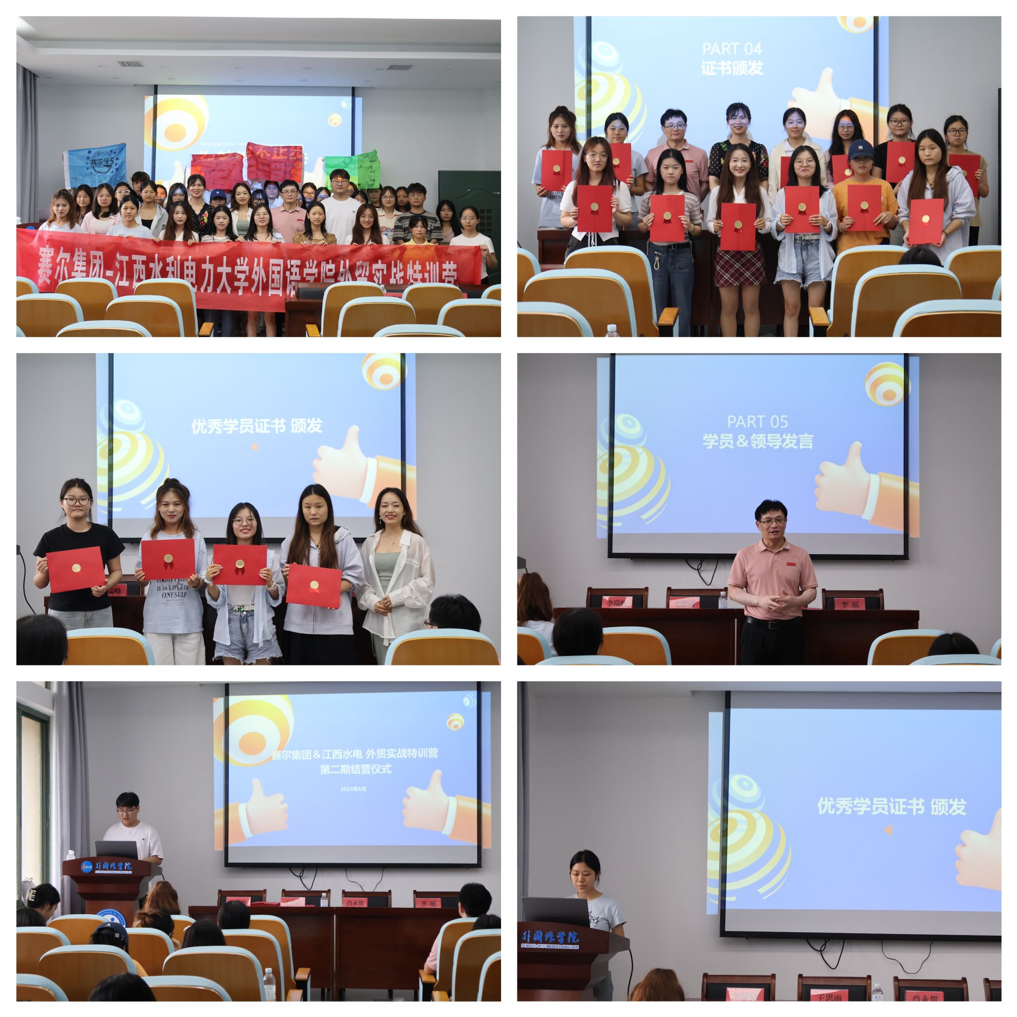 6月23日,必赢国际437官网与赛尔集团联合举办的第二期外贸实战特训营结营仪式于崇德楼A300顺利举行。赛尔集团人力资源经理王思雨、必赢国际437官网院长肖永贺、党委副书记李硕以及赛尔集团招聘负责人李瑞峰、特训营工作人员及学员代表近50人共同参加。