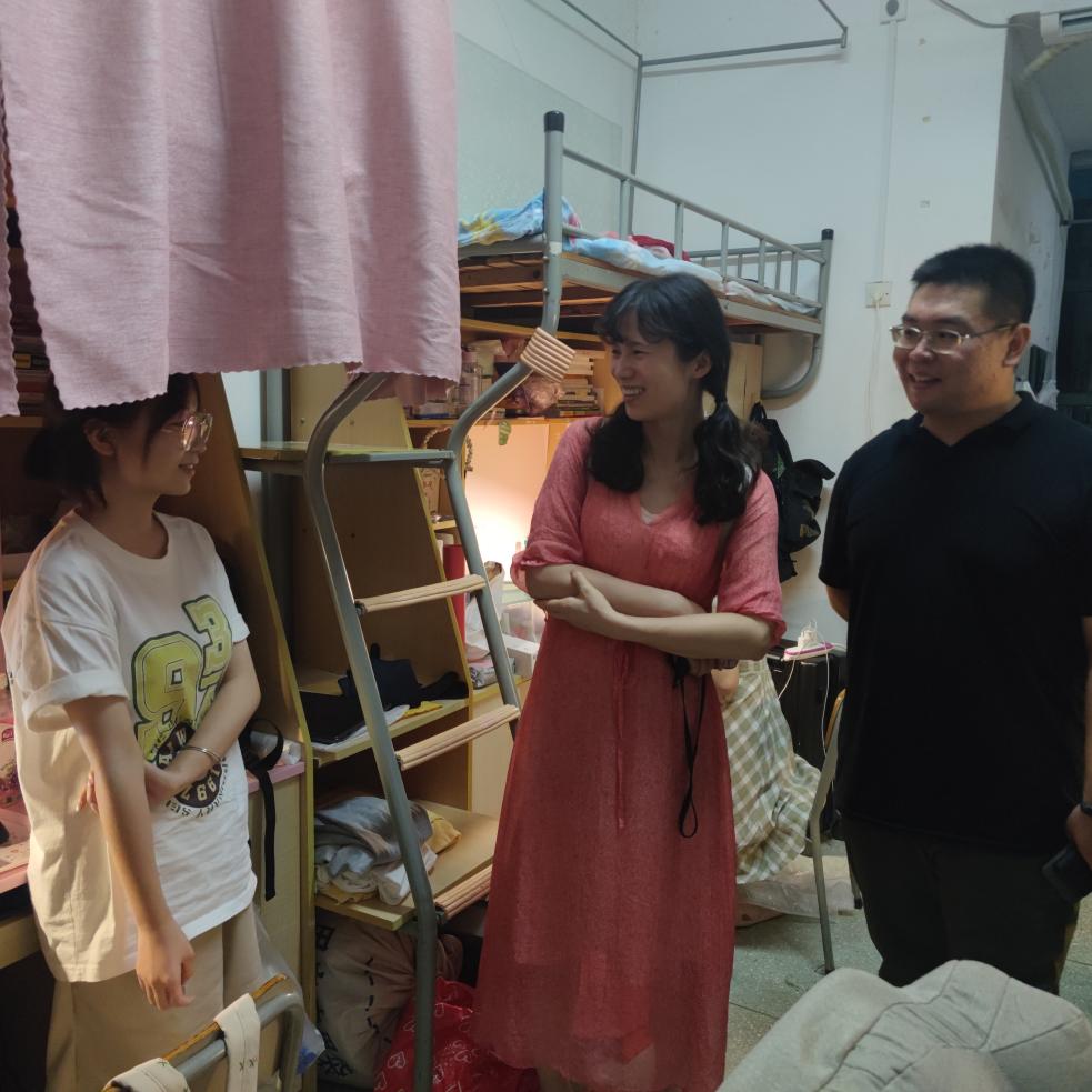 为深入了解必赢国际437官网学生暑期学习生活思想状态及返校情况,8月28日晚上,必赢国际437官网党委副书记李硕、辅导员章昱与学生干部前往学生宿舍走访看望返校同学。