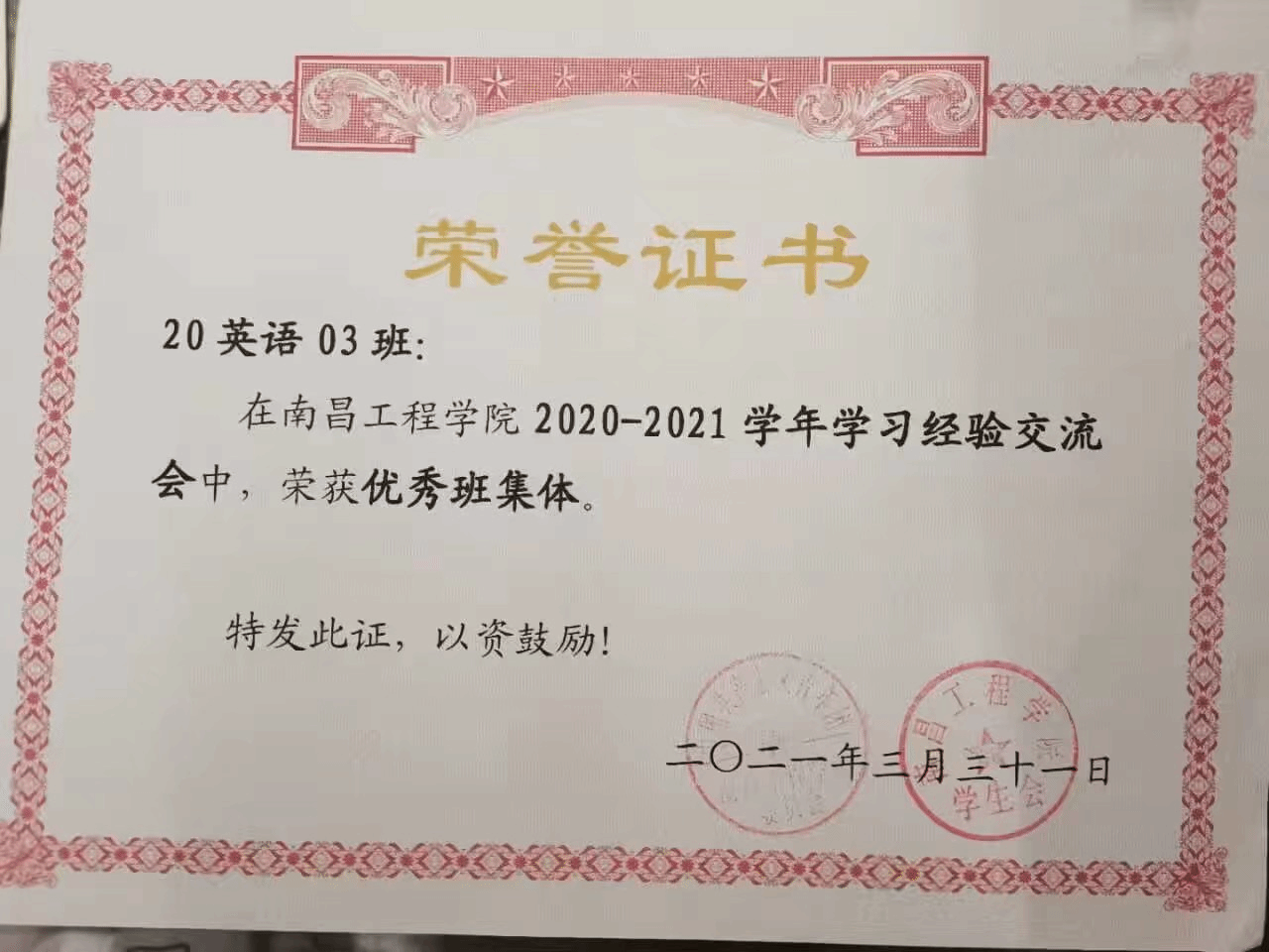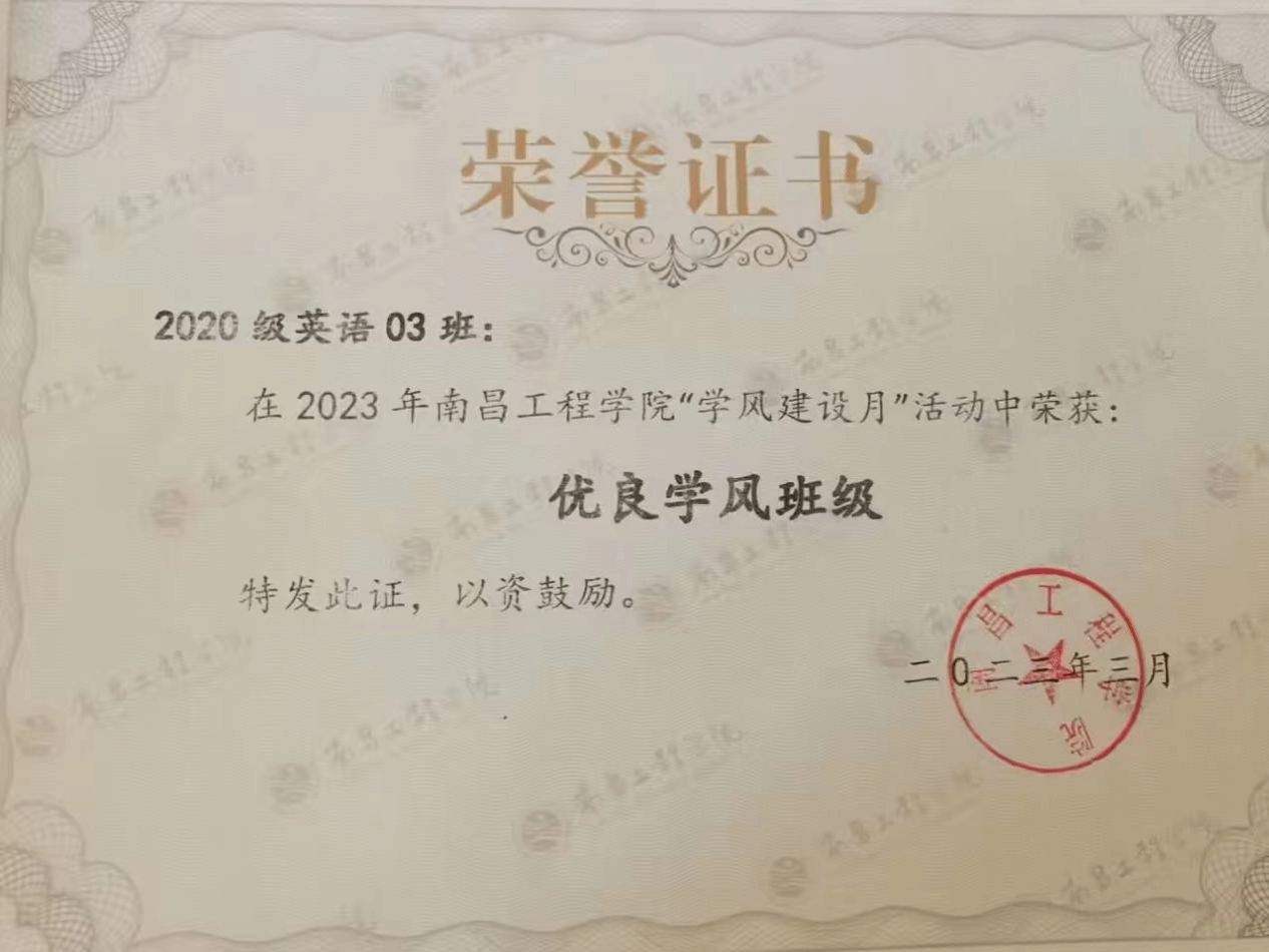 在学习上,20英语03班在2020-2021学年学习经验交流会中获得“优秀班集体”的荣誉称号,在2023年“学风建设月”活动中荣获“优良学风班级”。在思想上,20英语03班的每一位同学尊重每一位老师,在节日为老师送上最真诚的祝福。在生活上,他们积极参与学校、学院组织的各种活动,在必赢国际437官网新生才艺大赛中荣获优秀奖。