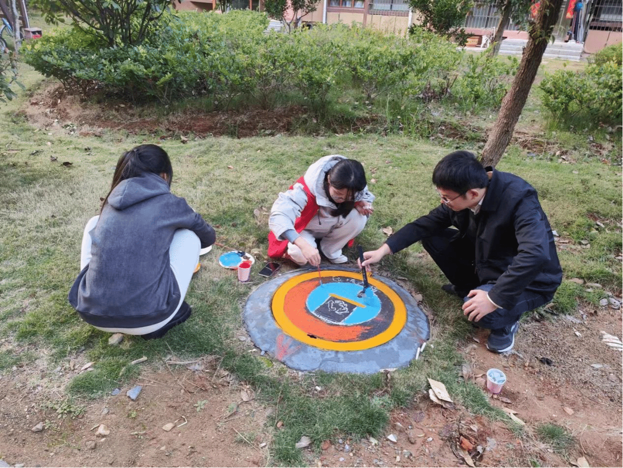 活动开始前,王聪在艺术楼前发表讲话,表达了对志愿者的无私奉献志精神的称赞,并提醒志愿者们在前行途中注意人身安全。活动中,志愿者对京荣社区井盖进行涂鸦美化,志愿者们分工合作,有条不紊,积极投入到活动中,获得居民的一致好评。