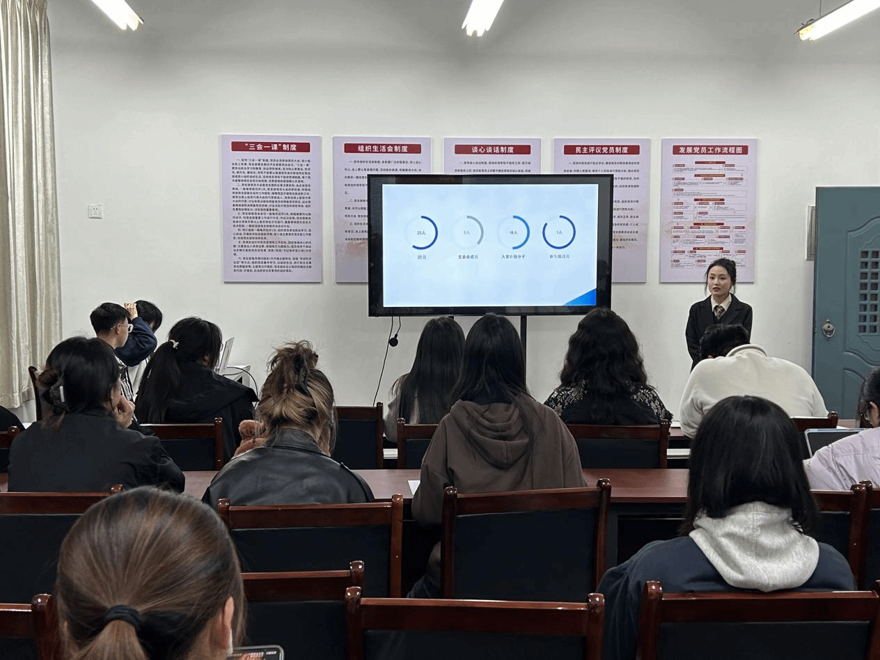 首先,优秀共青团干竞选者展现了他们卓越的才华和对团组织的深厚热爱,他们通过精彩的演讲,分享了自己在学习、社会实践和志愿服务等方面的丰富经验。随后,班级团支部代表分别从学业建设、思想建设、学风建设、品行建设四个方面展现班级风采。最后,章昱提出每位同学都要有着明确目标和规划,将专业学习和思想引领巧妙融合,在带动团支部全面发展的同时,也要注重了团支部成员的个人发展,真正做到“聚是一团火,散是满天星”。