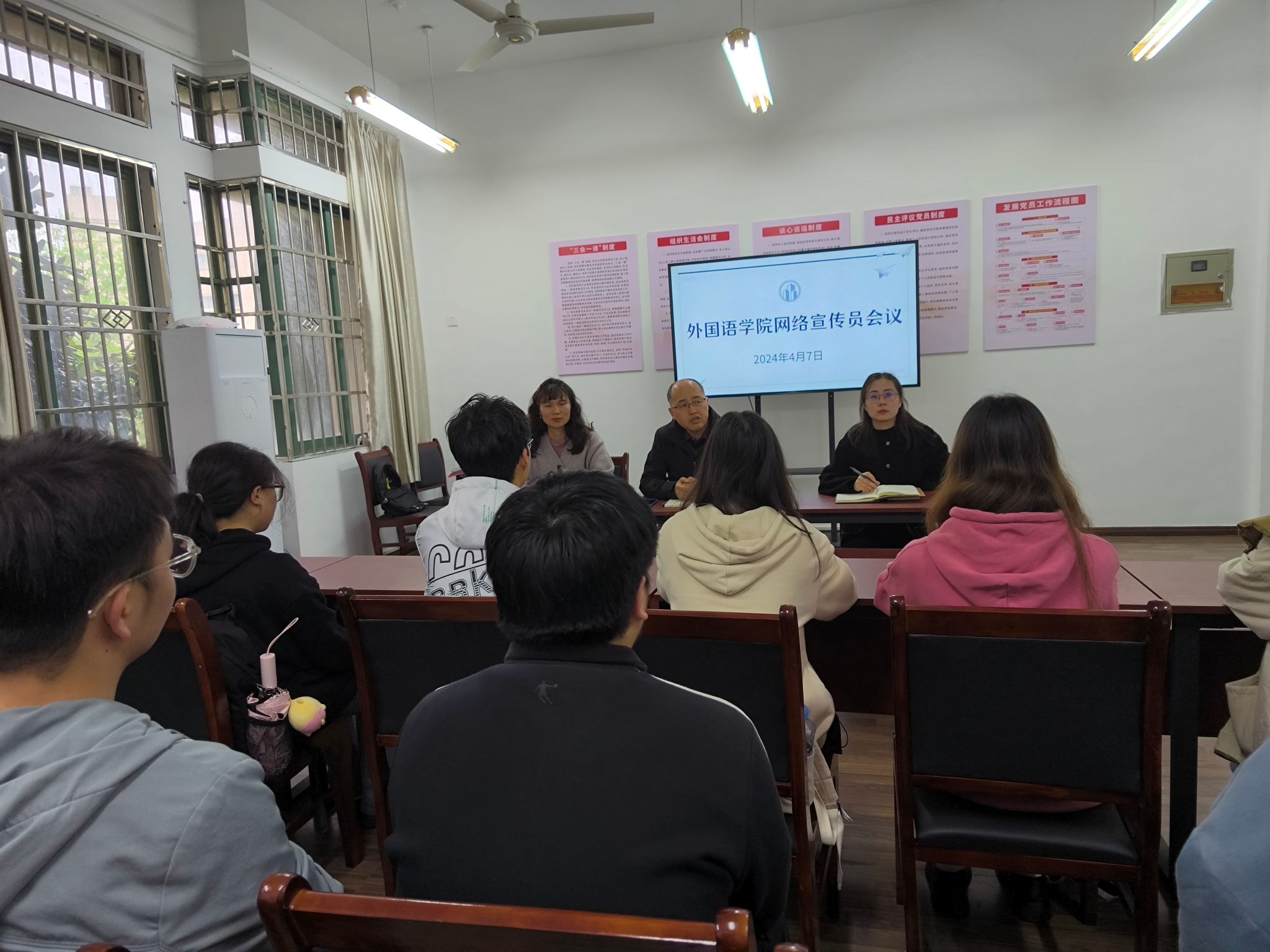 会上,宋志刚指出网宣员应积极承担相应责任,提高信息敏锐性,充分发挥自身上传下达的桥梁作用,协助学院工作顺畅进行。李硕强调网宣员要起到积极的带头作用,不断提高工作能力,形成良好的工作作风。