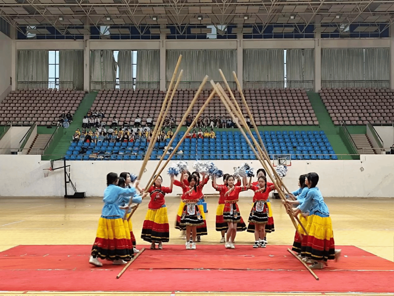 比赛中,7支参赛队伍身着各具特色的民族服饰,以饱满的热情和精湛的技艺,为观众带来了一场视觉与听觉的盛宴。竹竿舞作为一种富有节奏感和韵律美的舞蹈形式,以其独特的魅力吸引着在场观众的目光。