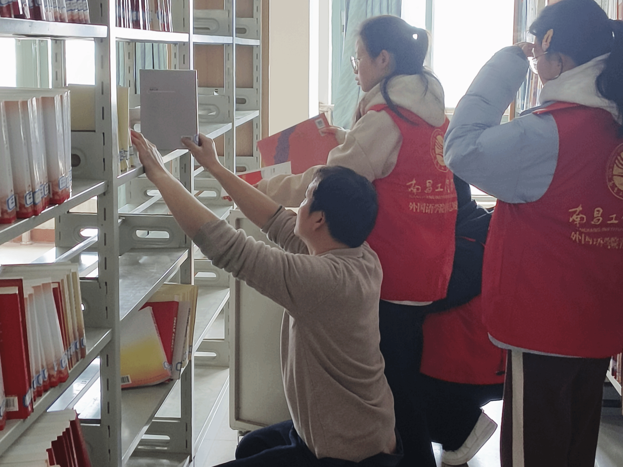 本次活动由图书馆管理人员划分小组并交代和指导各项任务,其中包括各类图书书籍扫码记录档案,书籍整理归类,图书搬运等。志愿者们井然有序,出色地完成各项志愿服务工作,相互配合,充分发挥了团队协作的力量。