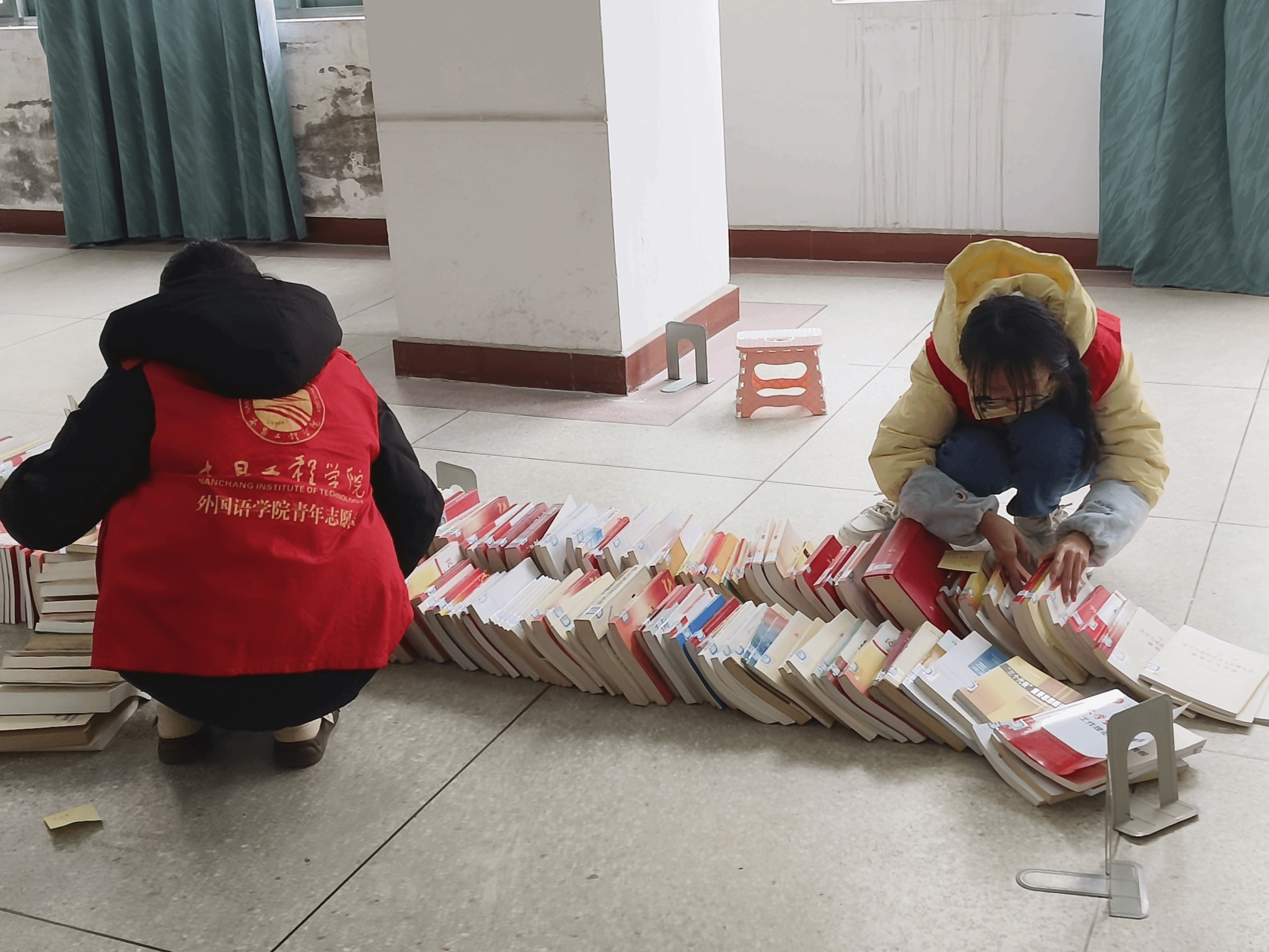 必赢国际437官网图书馆整理图书志愿者服务活动