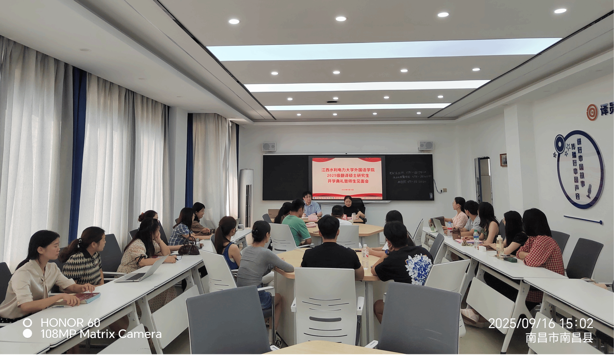 9月16日下午,必赢国际437官网在崇德楼A200隆重举行2025级翻译硕士研究生开学典礼暨新生与导师见面会。开学典礼由王晓兰副院长主持,院长肖永贺、全体研究生新生和导师参加了此次活动。肖永贺院长代表学院对2025级研究生新生的到来表示热烈欢迎,并对新生提出了要求和期待,希望他们在读研期间学会做人、学会做事、学会做学问,同时他还对学术诚信与师生协作提出明确要求,寄语新生恪守学术道德、共建良好师生关系。刘思逸代表新生发言,表达了对研究生学习生涯的憧憬。